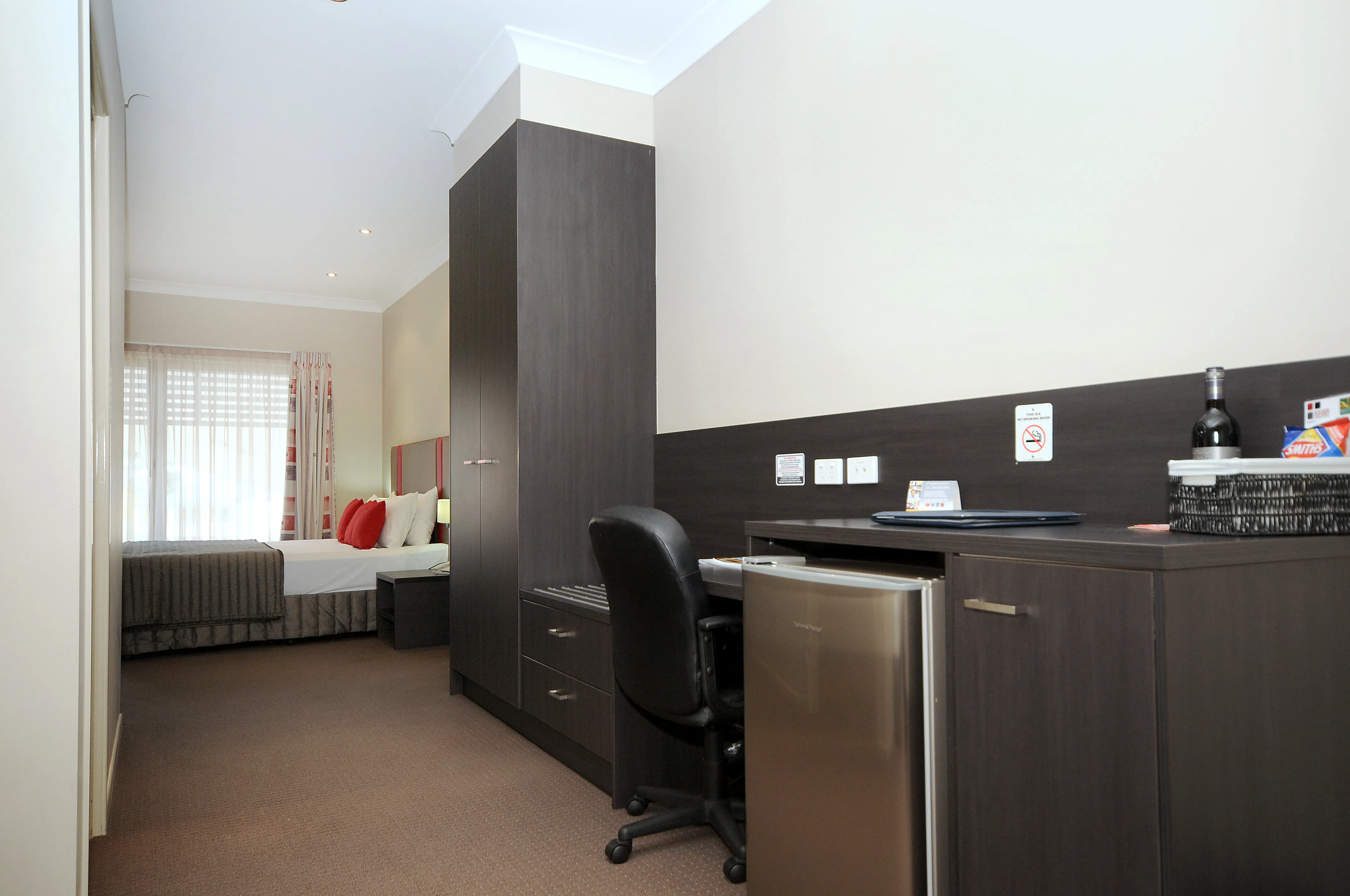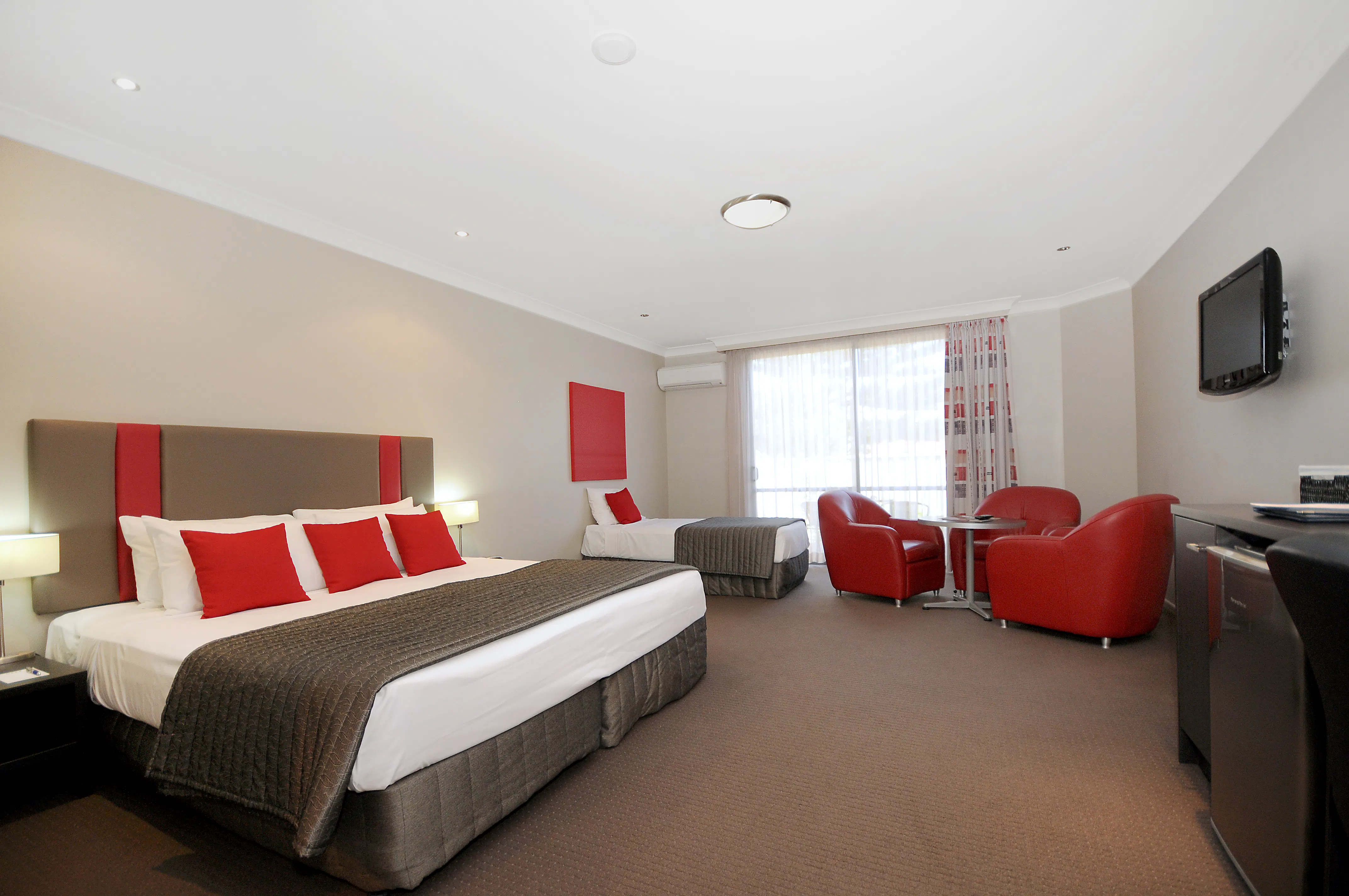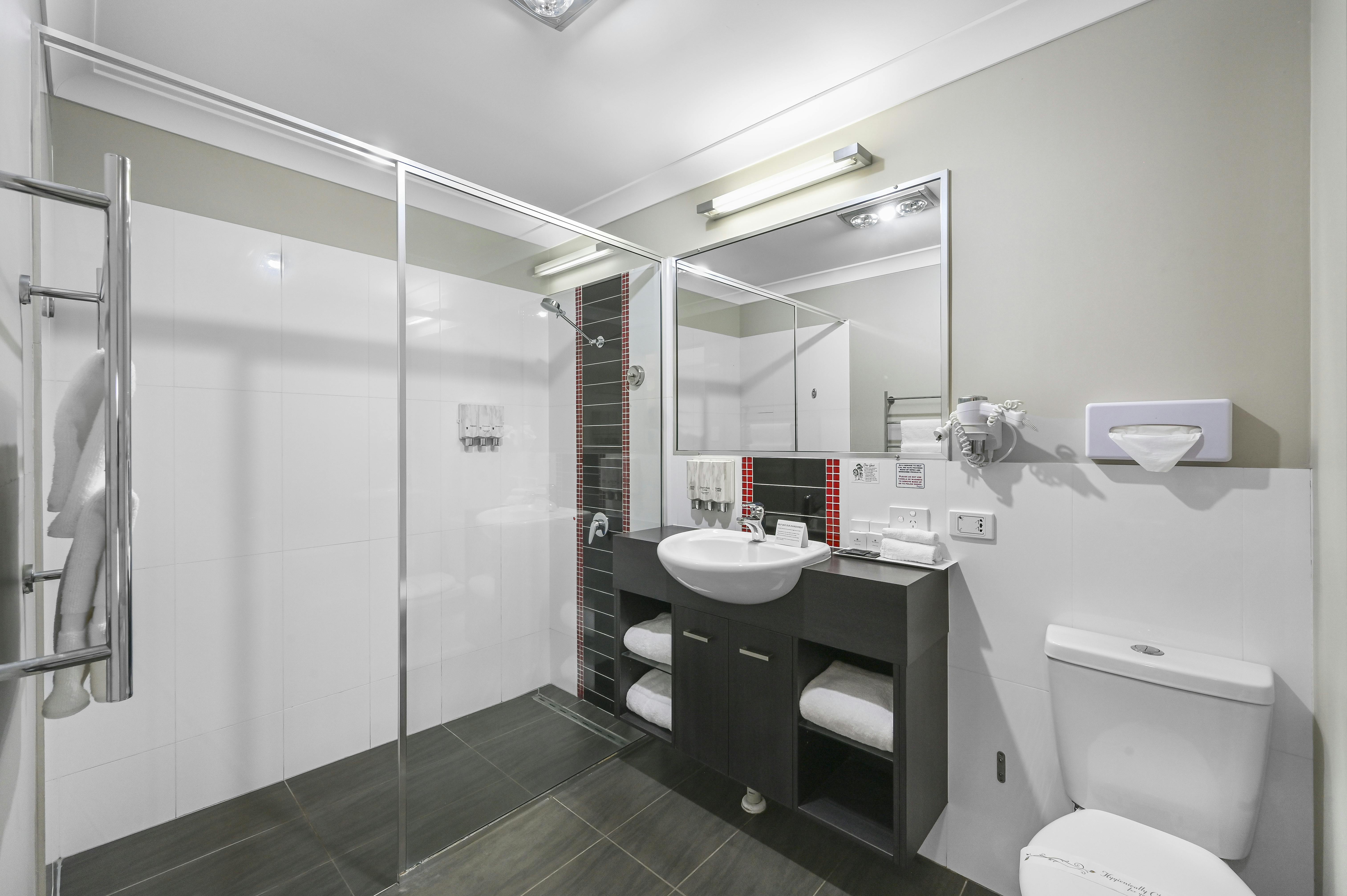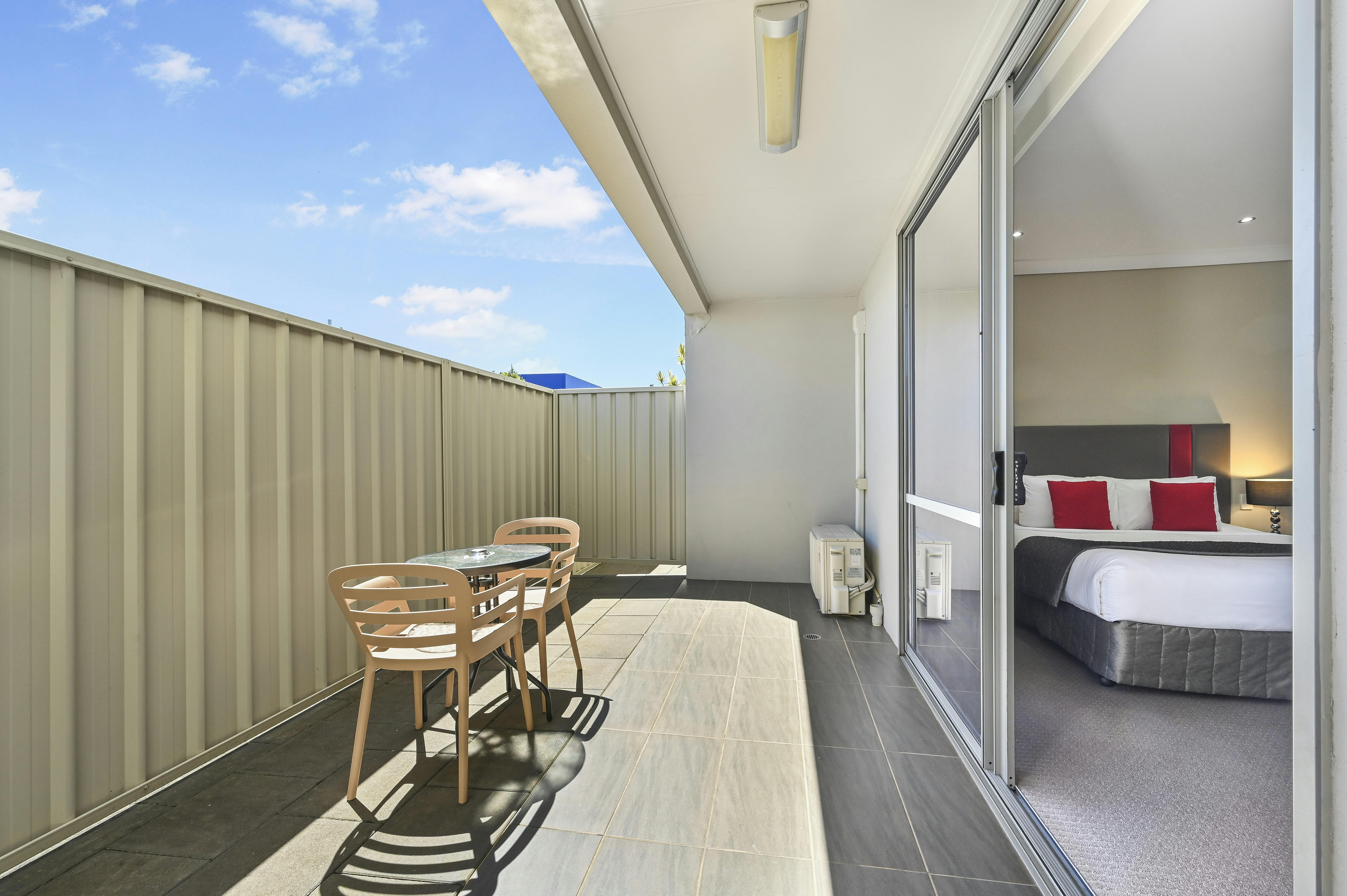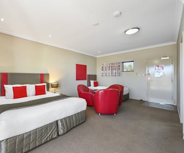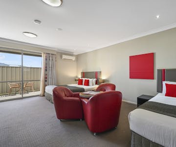 Perfect Toowoomba accommodation for twin share or just a little extra room. Each Executive King Suite has a King size bed and 1 single bed, a spacious modern bathroom with a walk in shower. Executive King Suites have a private courtyard, ideal for enjoying a relaxing afternoon after travel. Each spacious suite features a mini-bar, desk, radio, hairdryer, tea and coffee making facilities, refrigerator, iron with ironing board and free WiFi internet access.