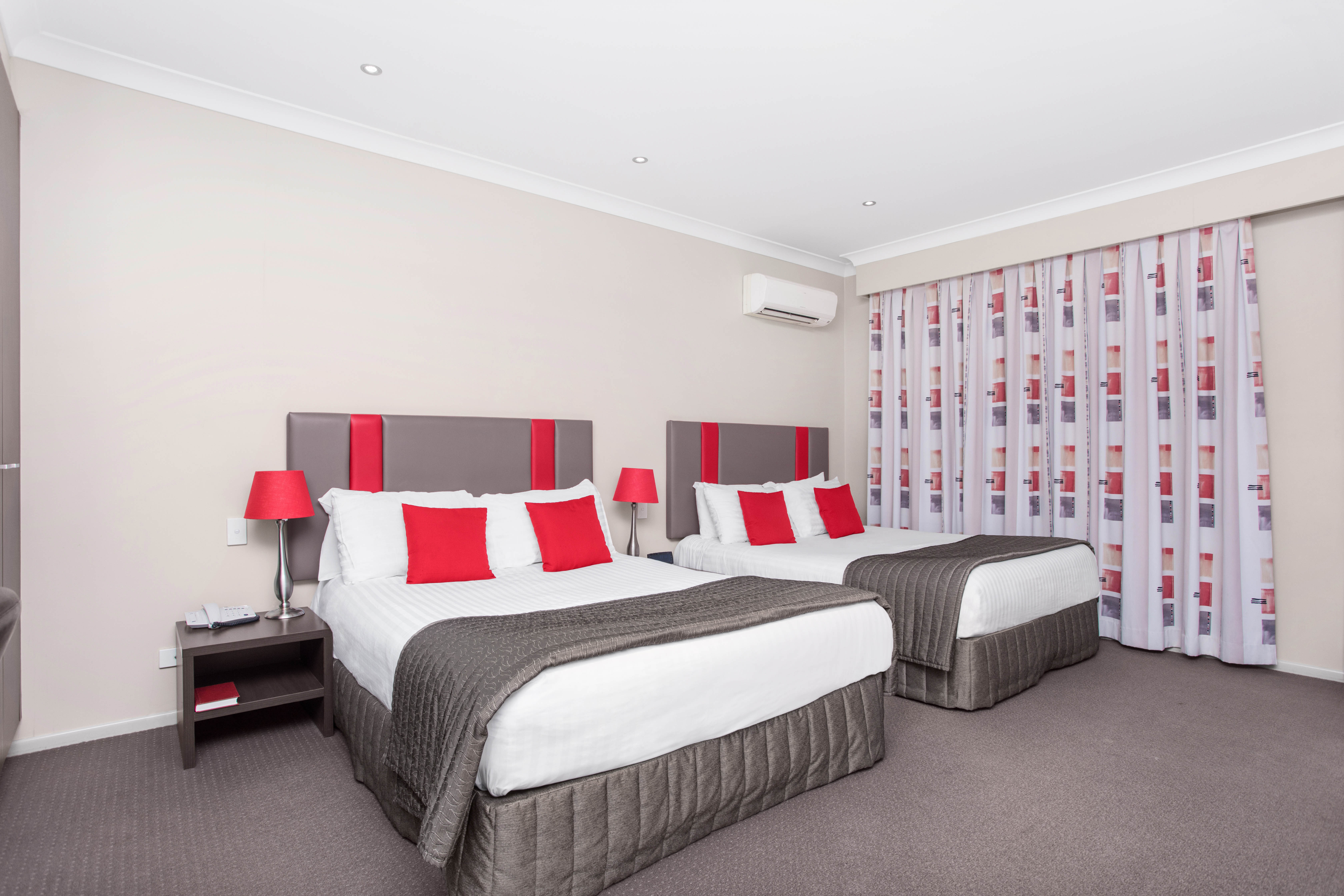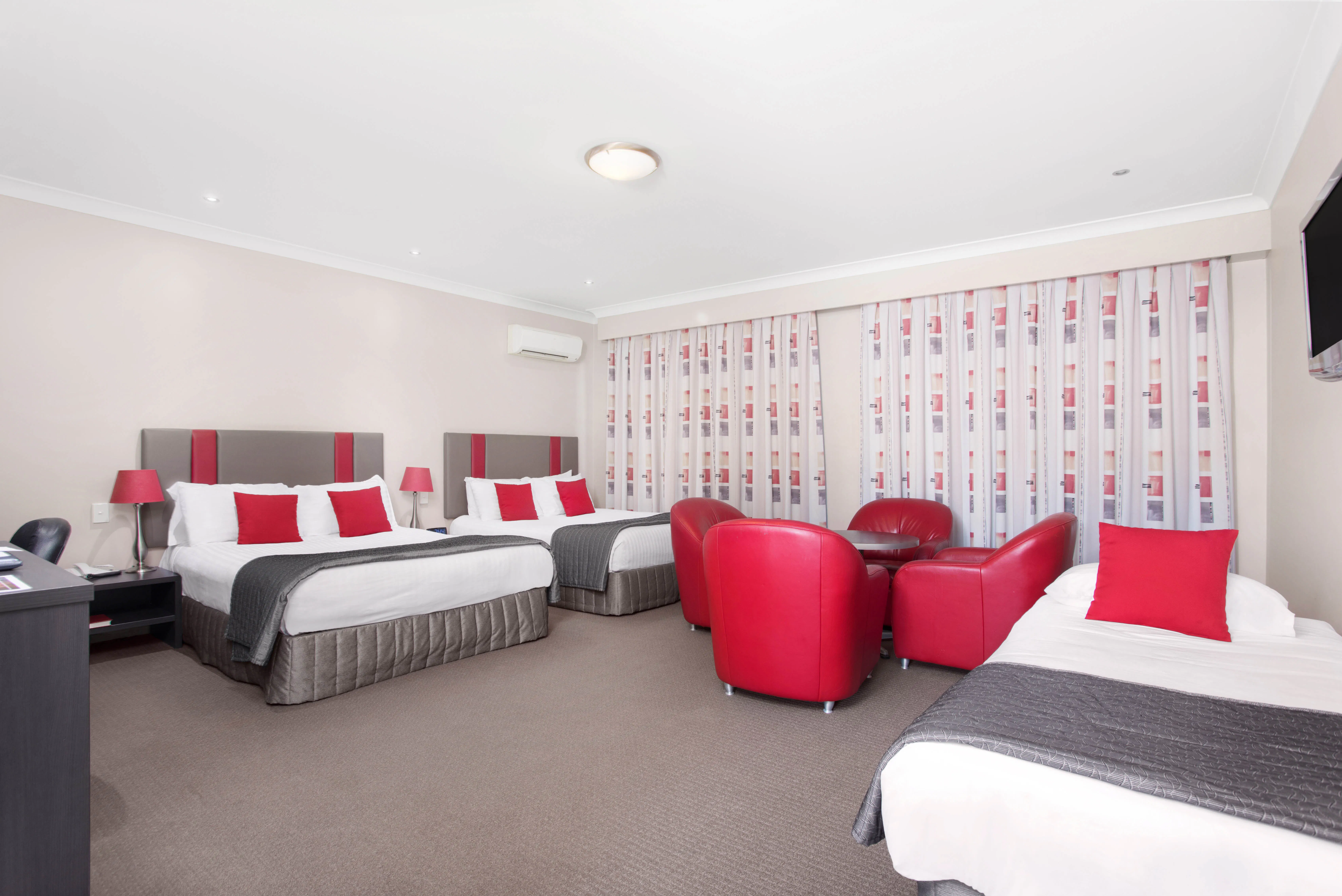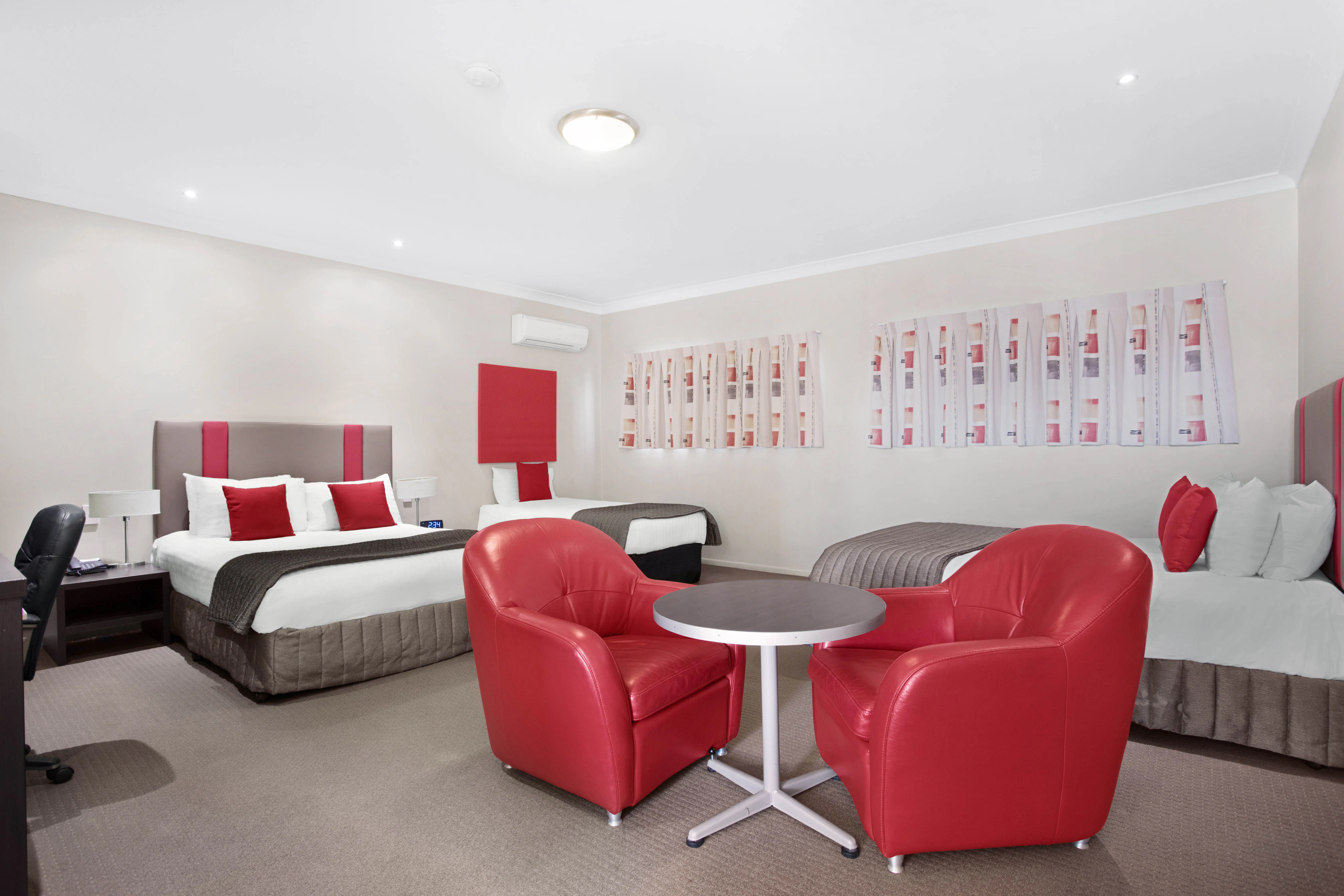 Our stylish Superior Family Rooms have two Queen sized beds and one Single Bed, free WiFi, desk, an LCD TV with cable, mini-bar, refrigerator, radio, tea and coffee making facilities, bathroom with a walk in shower, hairdryer, iron and ironing board. These rooms have a balcony or courtyard, perfect for making the most of the mild Southern Queensland temperatures.